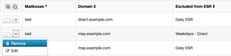 When activated, Email Scout Reports are automatically sent to all detected mailboxes in a domain. However, there may be specific mailboxes in the domain that should not receive Email Scout Reports. In addition to manually added exclusions, this list also contains those mailboxes where the recipient chose to unsubscribe.